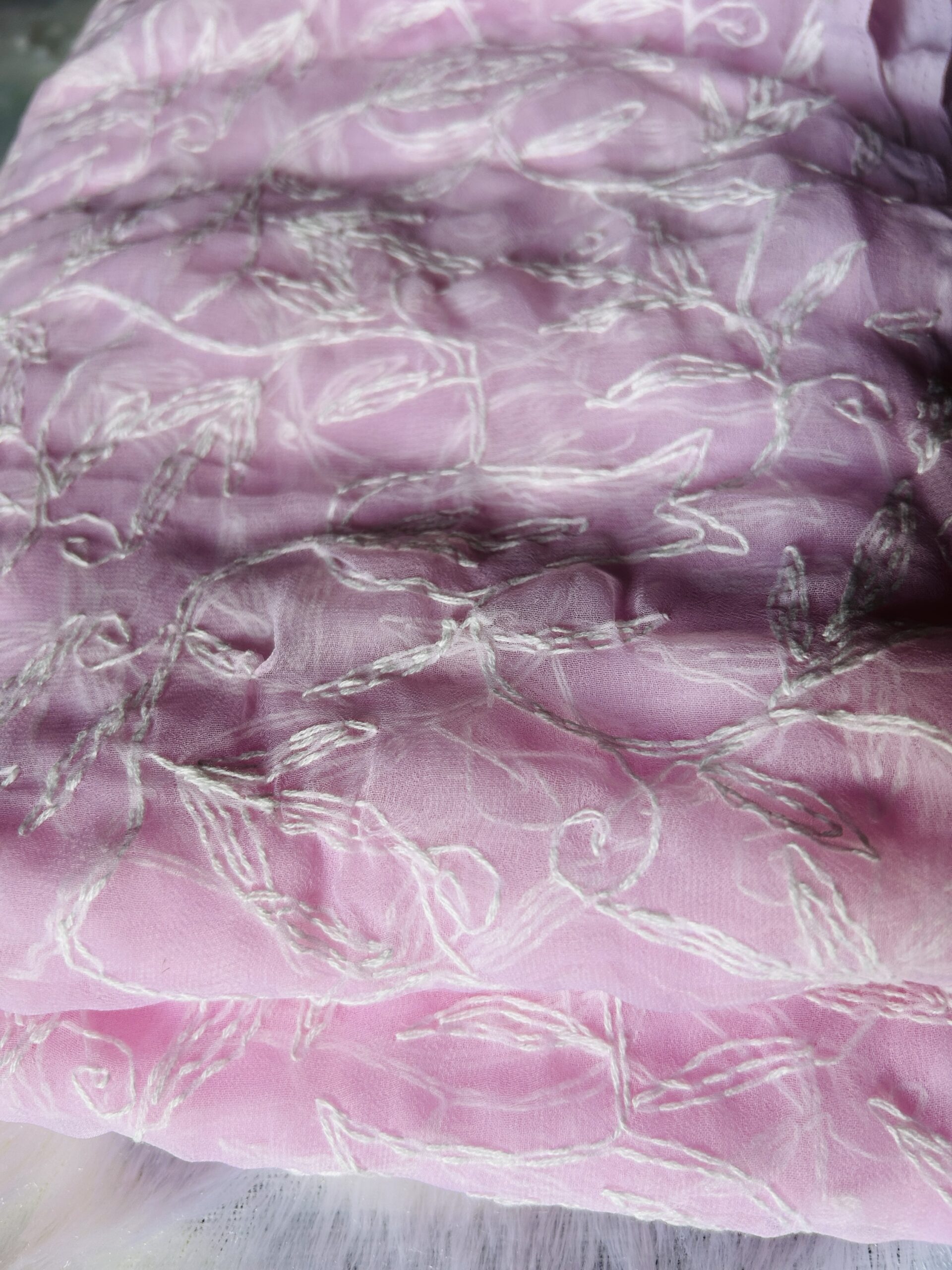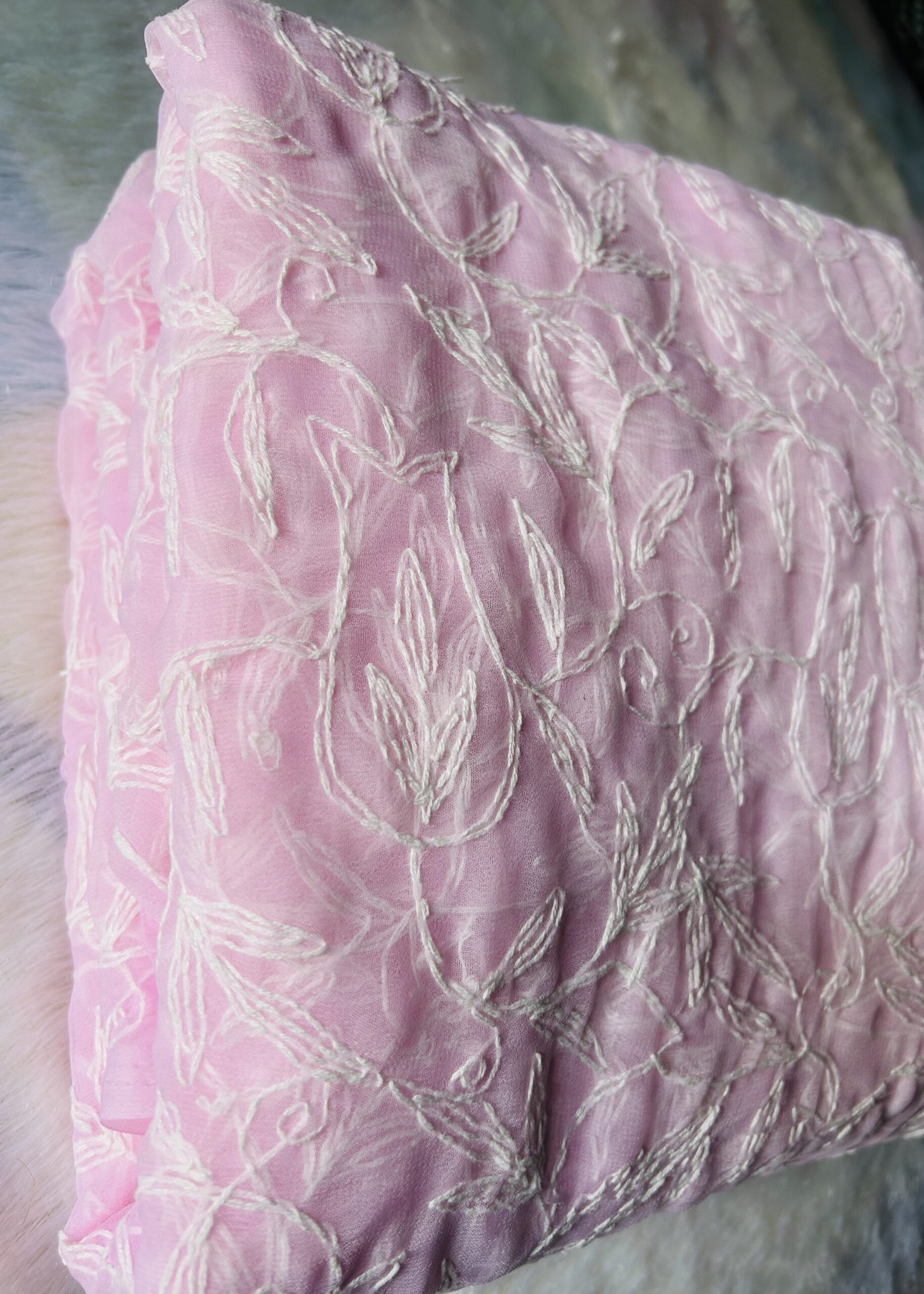 Baby pink – Jaal work Georgette saree