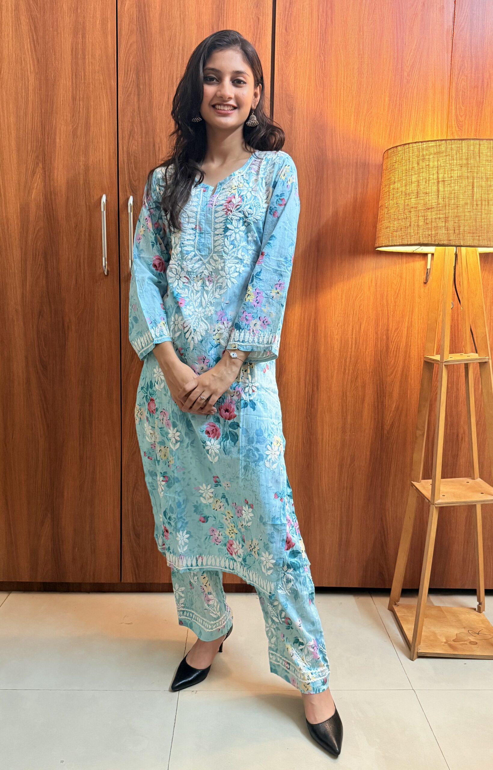 Home Chikankari Set Suits Mul Cotton set suit – Blue