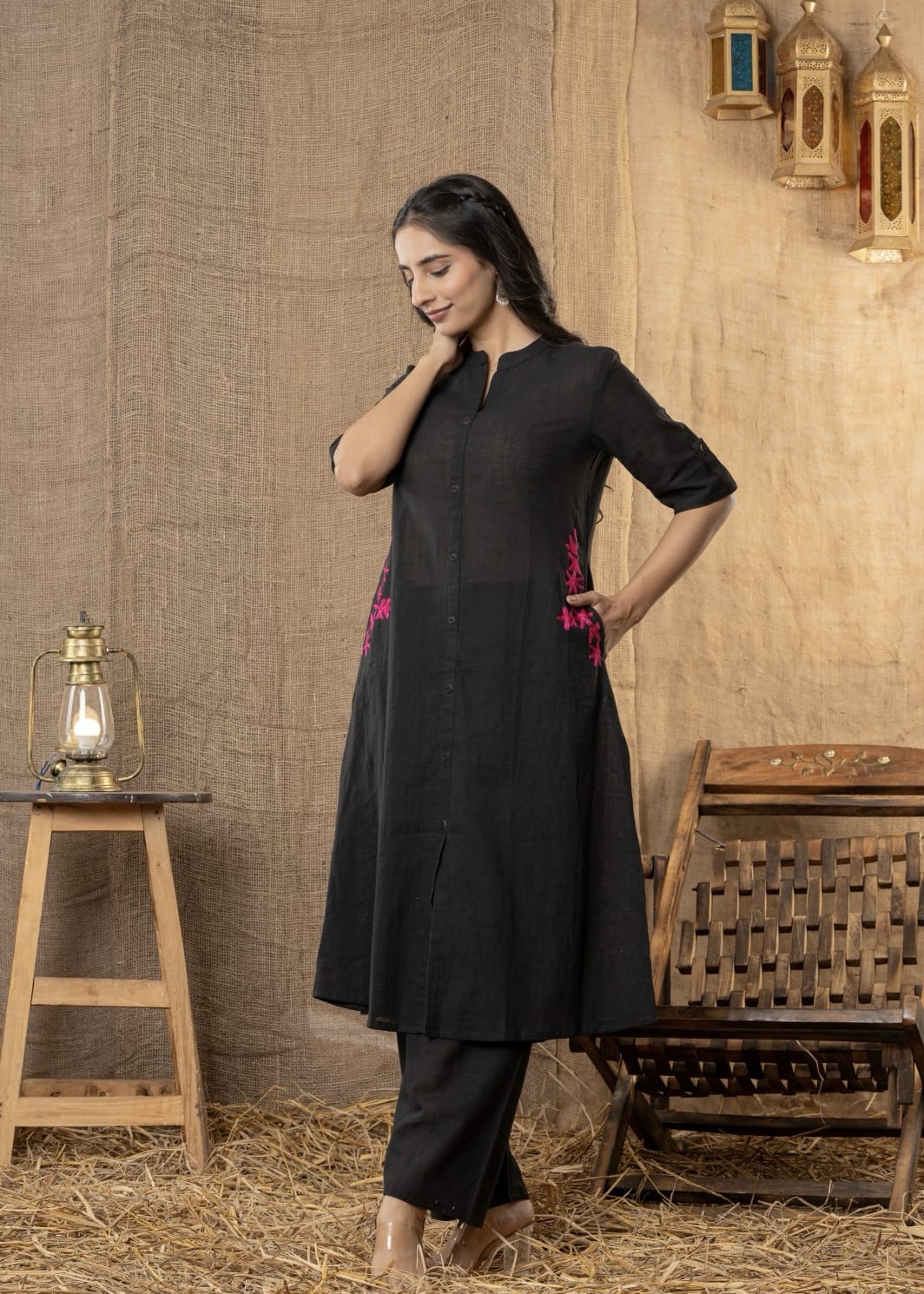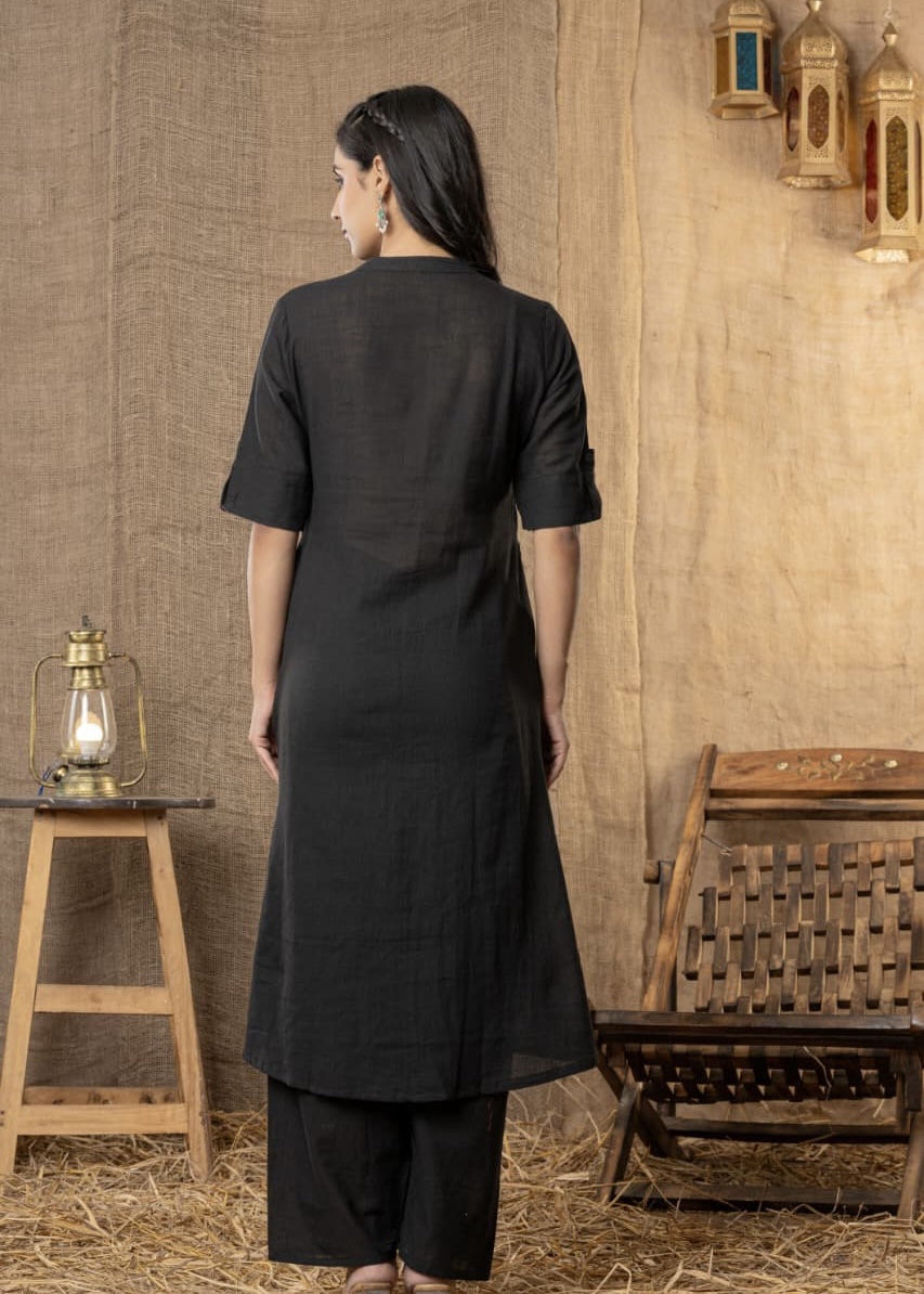 Top: Relaxed fit kurta with minimal detailing on pockets