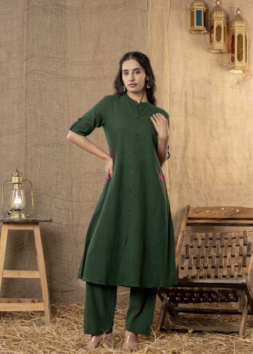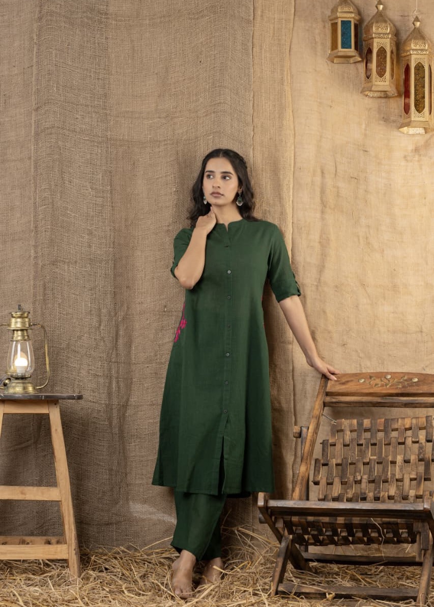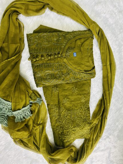 Cotton chic set suit – Mehndi Green